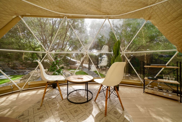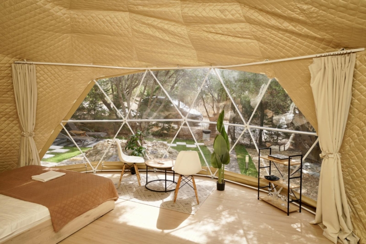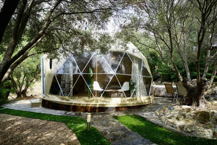 Τα Domes είναι glamping σκηνή με κυκλικό pvc , Σιδηροκατασκευή και διαφανές ζελατίνα μπροστά πανοραμικό παράθυρο. Αναμονή για είσοδο με πόρτα στα πλάγια και διαμόρφωση εσωτερικά όπως επιθυμείτε εσείς.