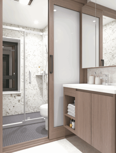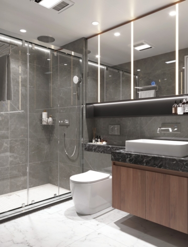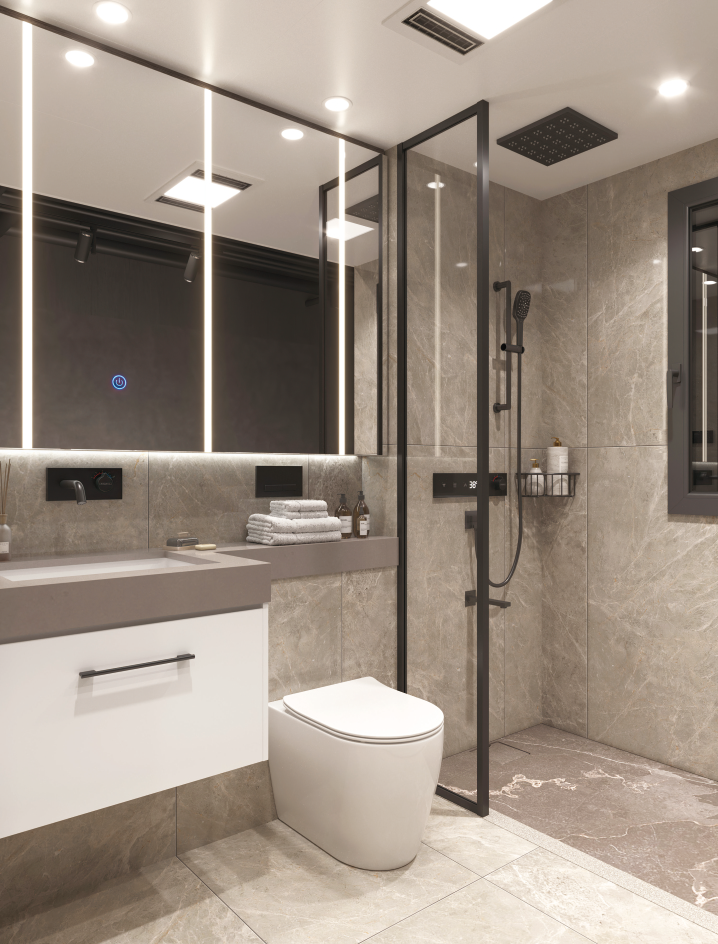 ◆ Το Μέρος Α πρέπει να εγκαταστήσει δύο ή περισσότερους διακόπτες (ανάλογα με τα ηλεκτρικά εξαρτήματα) στον εξωτερικό διακοσμητικό τοίχο της μονάδας μπάνιου και να προβλέψει ένα κουτί σύνδεσης (προτείνεται να είναι εντοιχισμένο) στον τοίχο του κτιρίου για σύνδεση με την παροχή ρεύματος. Οι προδιαγραφές καλωδίωσης της μονάδας είναι BV~2×2.5mm² και ο σωλήνας είναι DN16 PVC επιβραδυντικού φλόγας. Ο κεντρικός σύνδεσμος ισχύος τοποθετείται στο κουτί σύνδεσης και το προβλεπόμενο καλώδιο ισχύος είναι >1.500mm. Ο κεντρικός πίνακας παροχής ρεύματος της μονάδας πρέπει να διαθέτει συσκευή προστασίας διαρροής.